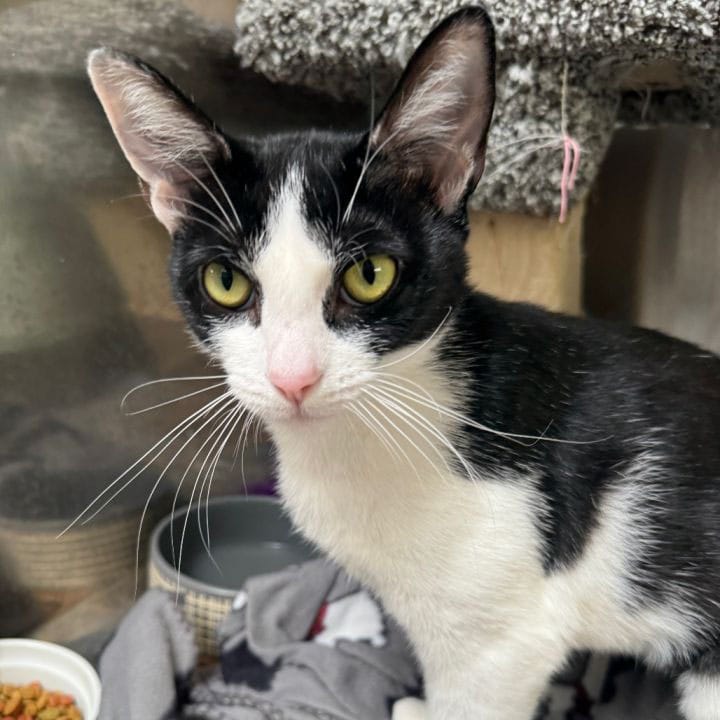 “Jellicle cats Socks and Peanut are an unlikely bonded pair. While we were rehabbing Socks, we picked up a friend for her at LBACS since at that time we had no other kittens. The first night, Socks overwhelmed Peanut with her playful antics. He hid. The next day and every day since, they have been inseparable. They have been with us since May 2023. They were seven weeks old when Peanut joined the fun. How they are still here, we've no idea. They’re dog friendly, kid friendly, cat friendly (well, tolerant. Peanut only has eyes for Socks). Email jelliclecatsrescuefoundation@gmail.com if you'd like to meet this perfect, perfectly bonded pair.”