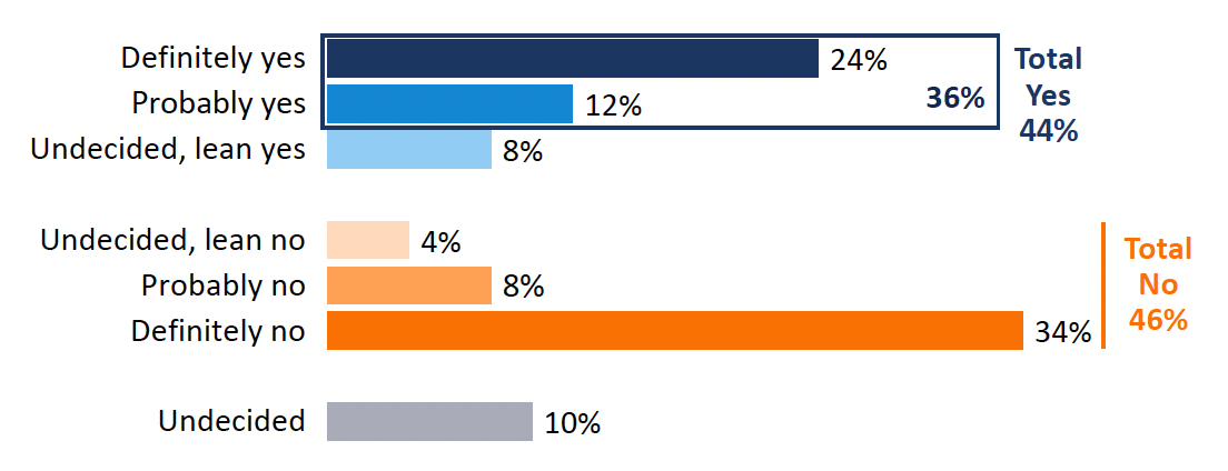 The results were clear, however, with 46% of respondents saying they would vote against the measure and 44% saying they would vote yes.