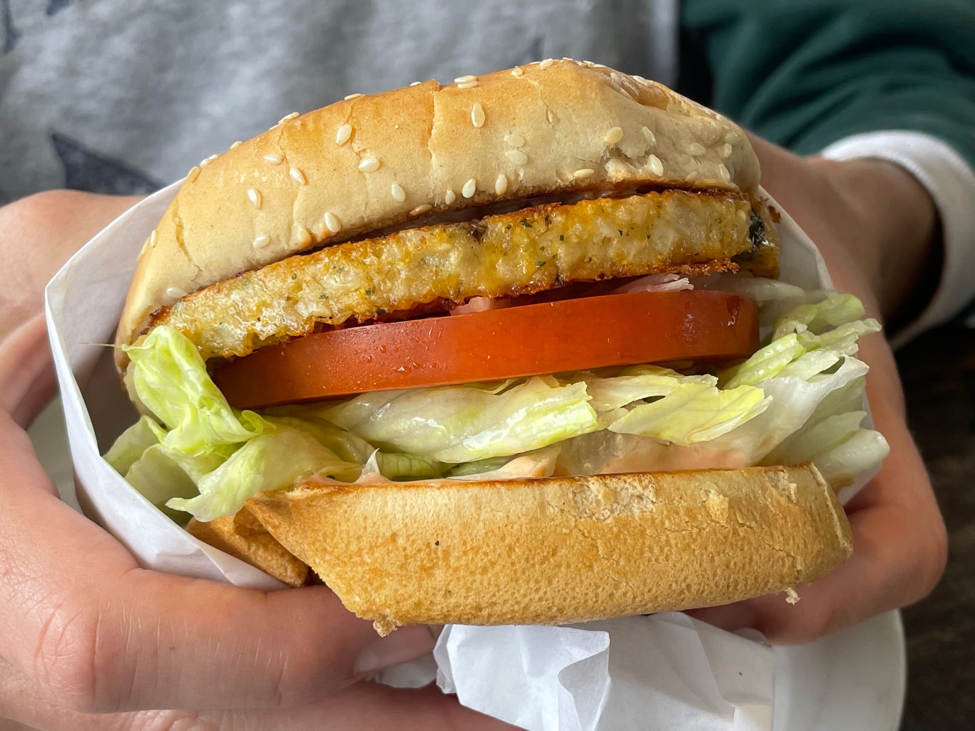 I know, that sounds like a strange breakfast order. But the the price was right and everything we ordered arrived quickly, hot and all of the ingredients were pretty dang fresh. What’s more, it was one of those really good garden burgers, not the cardboard-textured patties that eateries had before the advent of quality meat mimicry.