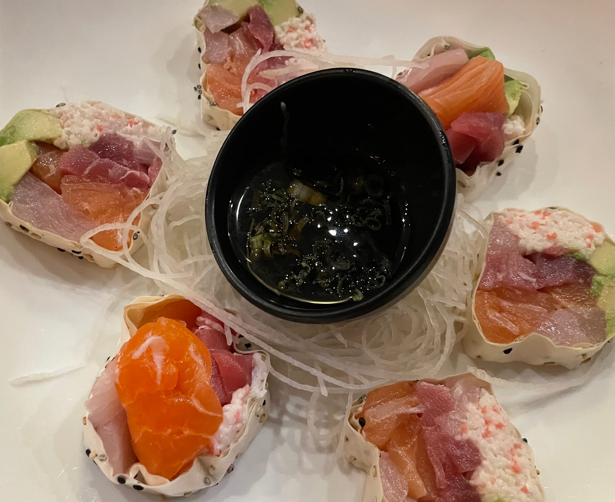 When you visit Sushi Ai, ask Chris the sushi chef to make you a Microtech Sashimi roll. It has tuna, salmon, yellowtail and crab, all wrapped in soy paper atop daikon radish — no rice necessary. You may also want to try the Stinky: Albacore outside of a California roll (imitation crab), topped with deep fried onions and butter garlic chips ($18.95).