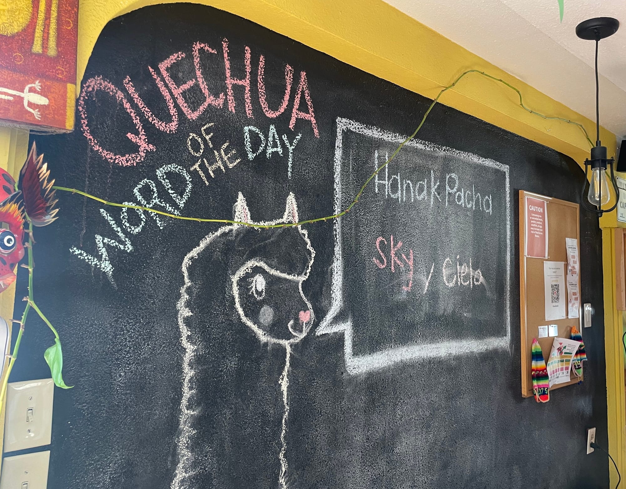 When owner Agustín Romo opened the eatery in 2018, he created a menu and decor that focused on Peru’s vibrant Andean region. When you enter, notice the woven blankets, decorative masks, fleece chullos (hats), baskets, mini alpacas and, of course, the Quechua word of the day, drawn in chalk. When we visited during happy hour, that word was Hanak Pacha, which is a phrase that refers to the sky. So naturally, we chose a seat under it on Casa Chaskis’ sunny patio.