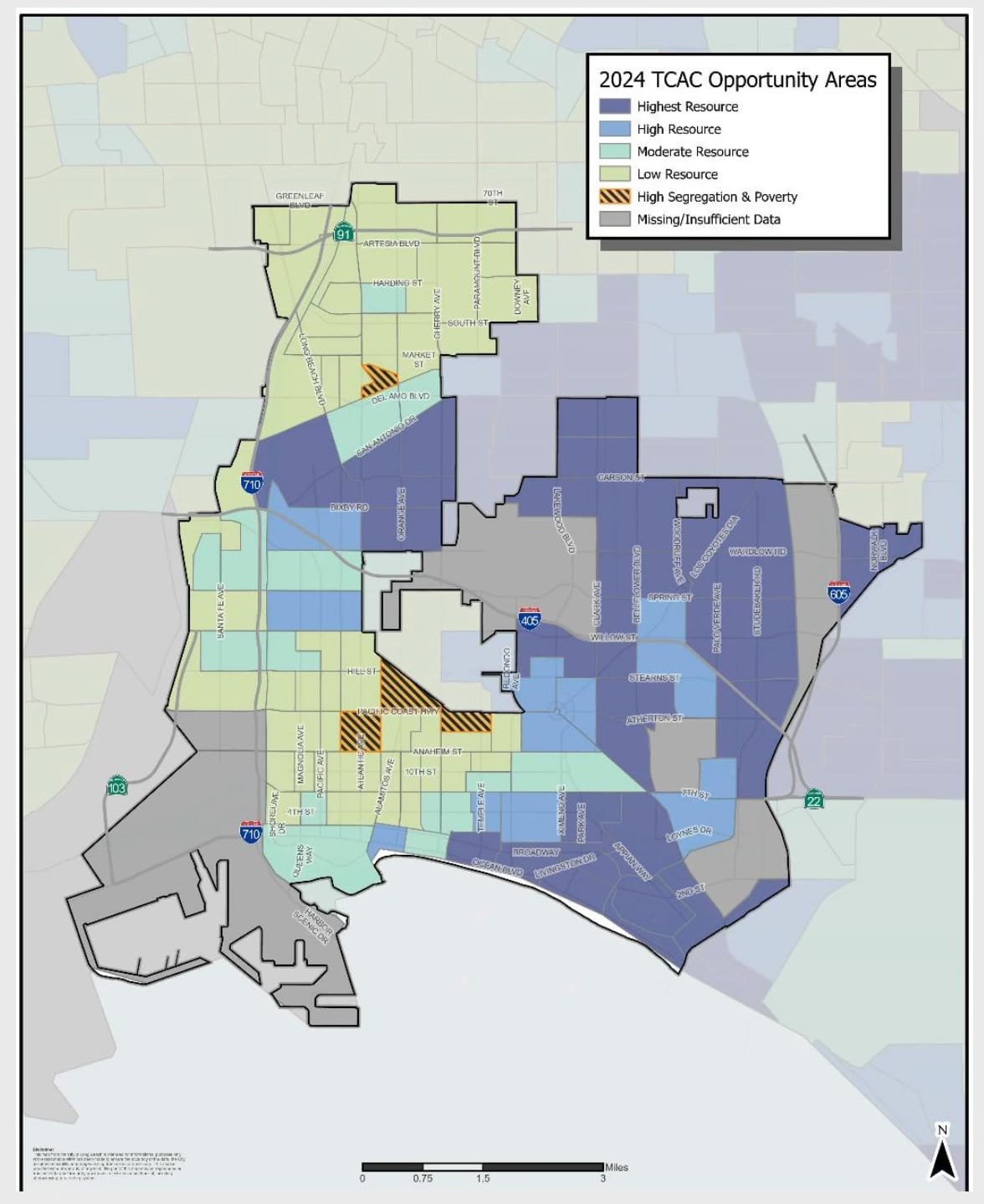 But the staff recommendation that Harper said could be most equitable would be to have the type of affordable units be dictated by where they’re being built. Under that model, a new project in a high-resource area, those with the best parks, schools and environmental conditions, like most of East Long Beach, would require 11% for very-low-income households.
