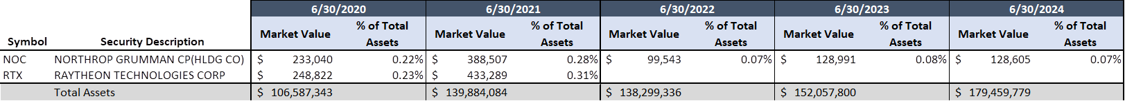 In 2020, the market value of CSULB’s holdings in Northrop Grumman and Raytheon totaled $481,862, or 0.45%, of its total assets. Those figures increased to $821,796, or 0.59%, in 2021, before the university sold off its Raytheon stocks. As of June 30 of last year, the university’s Northrop Grumman holdings were $128,605, or 0.07% of its total assets.