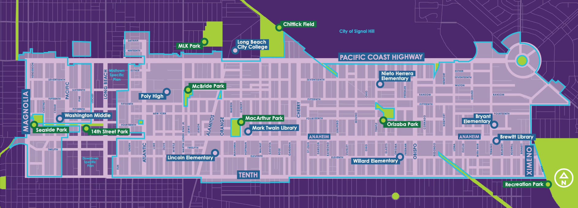 The “City Core” footprint spans from the Traffic Circle in the east to Magnolia Avenue in the west and includes stretches of Pacific Coast Highway, Anaheim Street and Tenth Street.