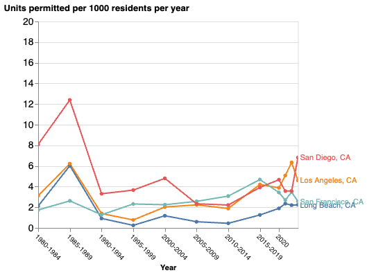 Long Beach has been among the lowest producers of all types of housing in the state since the 1990s. It’s been 30 years since we allowed more housing permits per 100,000 residents than San Francisco, Los Angeles or San Diego—three California cities that have intense housing crises themselves.