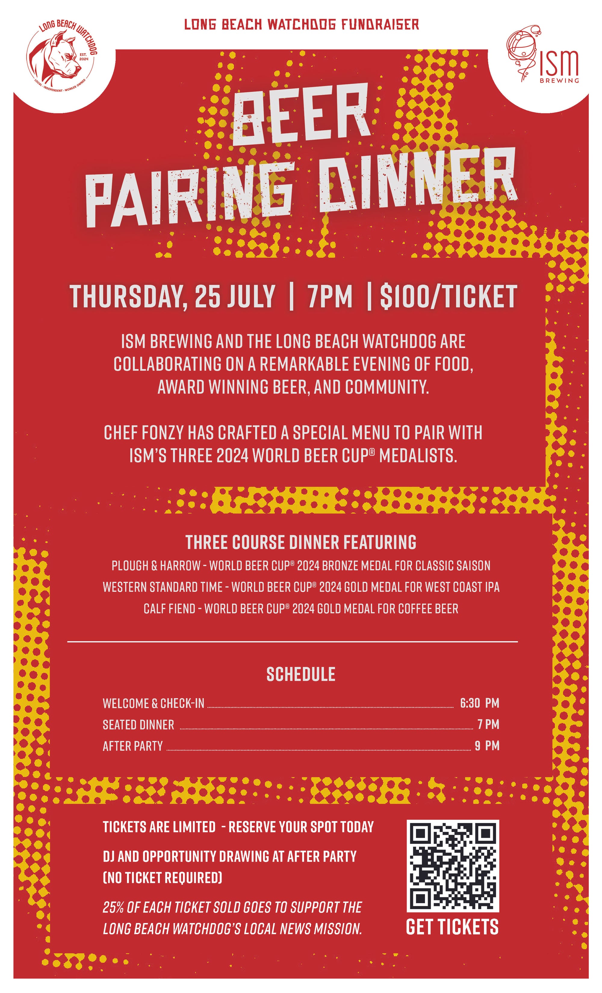 ISM Brewing is generously donating 25% of each ticket sold to the Long Beach Watchdog to support our mission of bringing you crucial, fearless, independent local reporting on your community daily.