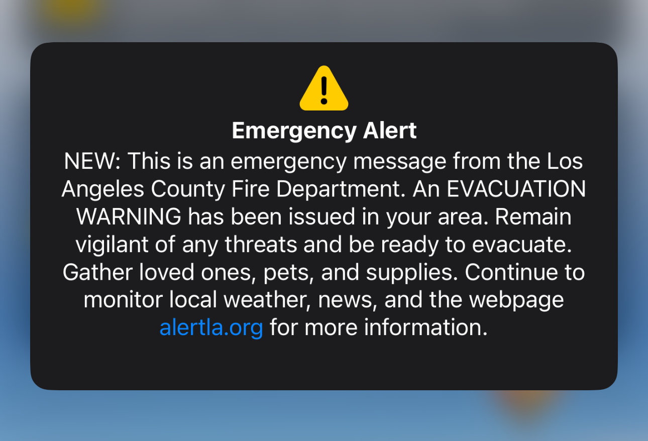 The evacuation notice we all received a moment ago was sent in error by Los Angeles County Fire Department.