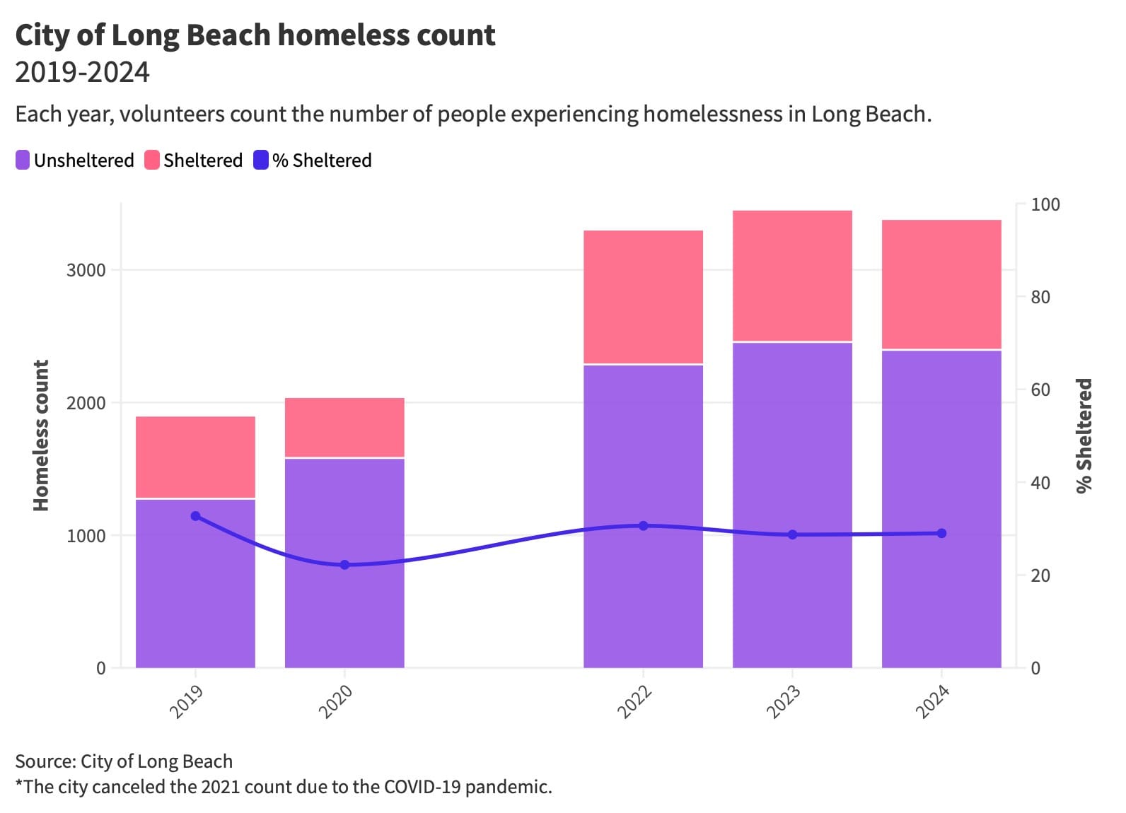 The committee’s report cited a 2023 Brookings Institution finding that while 30% of unhoused people in Long Beach are sheltered, in San Francisco that number is 43% and in San Diego, it’s 50%.