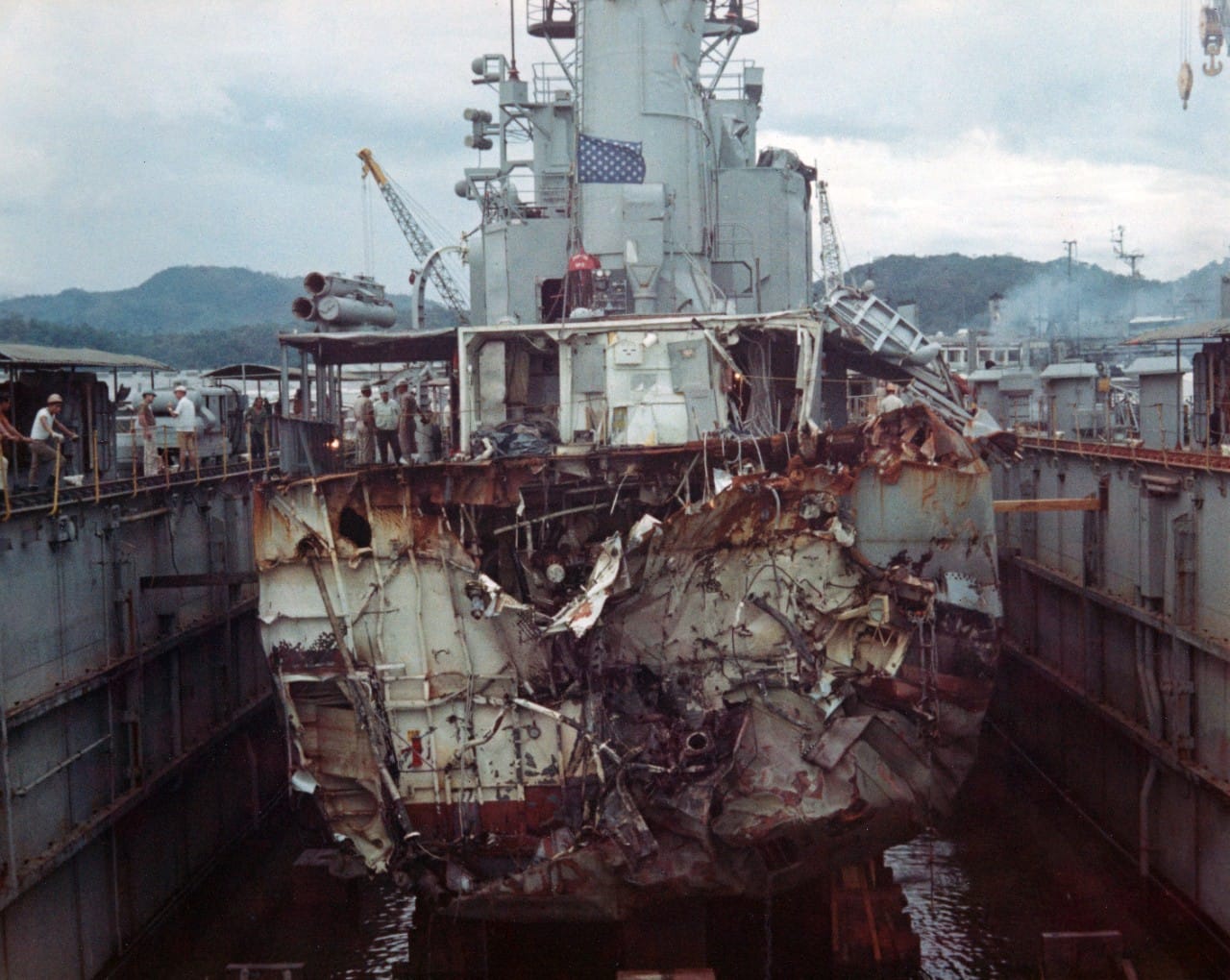 After the collision, Navy crews worked furiously to stabilize the Evans’ stern section, which was still afloat. Salvage tugs then towed what was left of the ship to Subic Bay in the Philippines, according to the Navy.