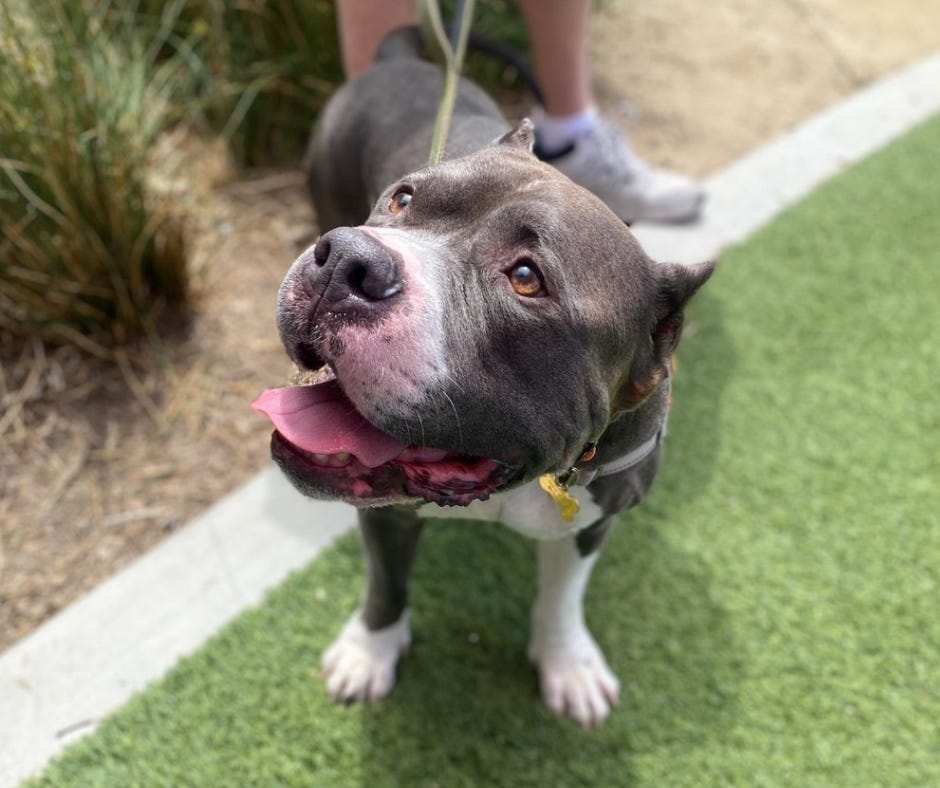 I was enjoying myself a couple of days ago at Long Beach Animal Care Services watching someone bonding with this great dog and waxing enthusiastic over the phone about the animal. Love at first glance at a shelter or a rescue — how could anything be better?