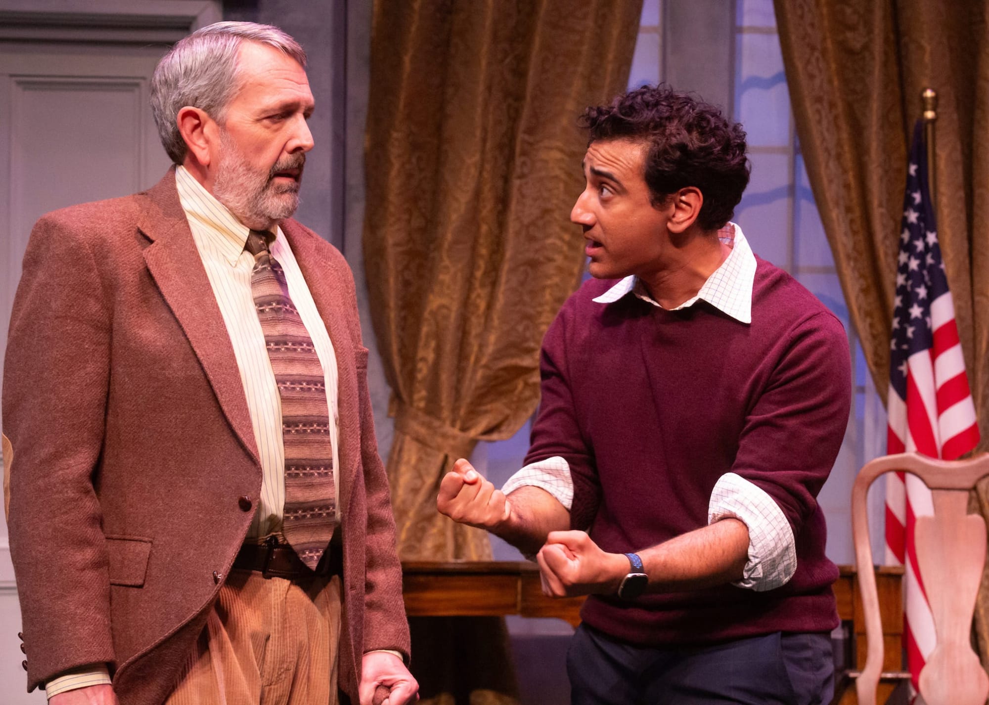Though Parsons sees how Peakes doesn’t substantially answer her questions, the audience may hear how our own candidates’ rambling speeches and interviews are not all that different in tenor and substance. In this way, the play calls attention to our willingness to dummy down our thinking in the presence of charismatic emotional figures.