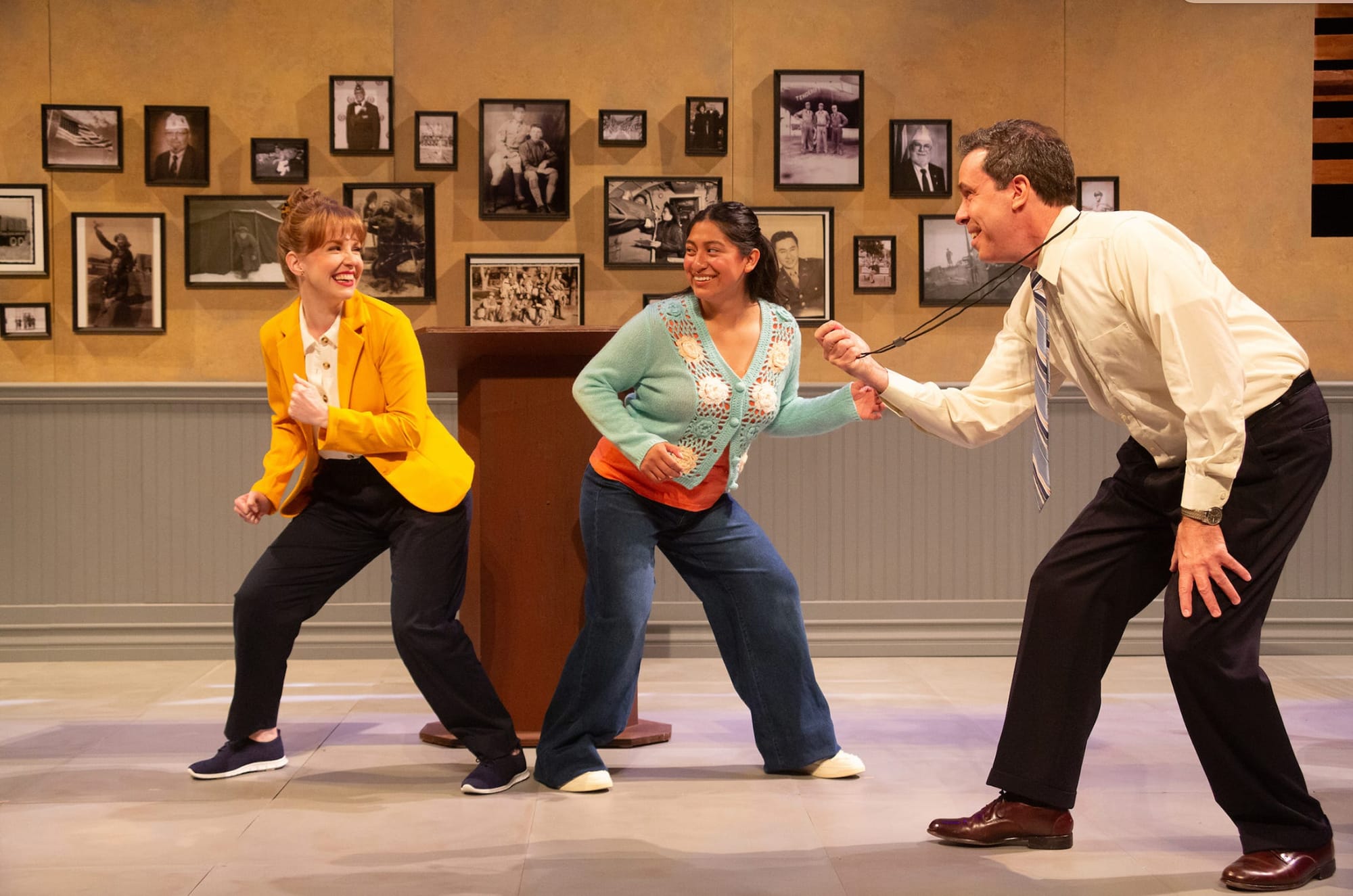 Dressed in a bright yellow jacket, Dorney as Schreck tells us up front that the play will recall her tour of American Legion halls as a 15-year-old, earning money for college by speaking to veterans about how the Constitution impacted her personally.