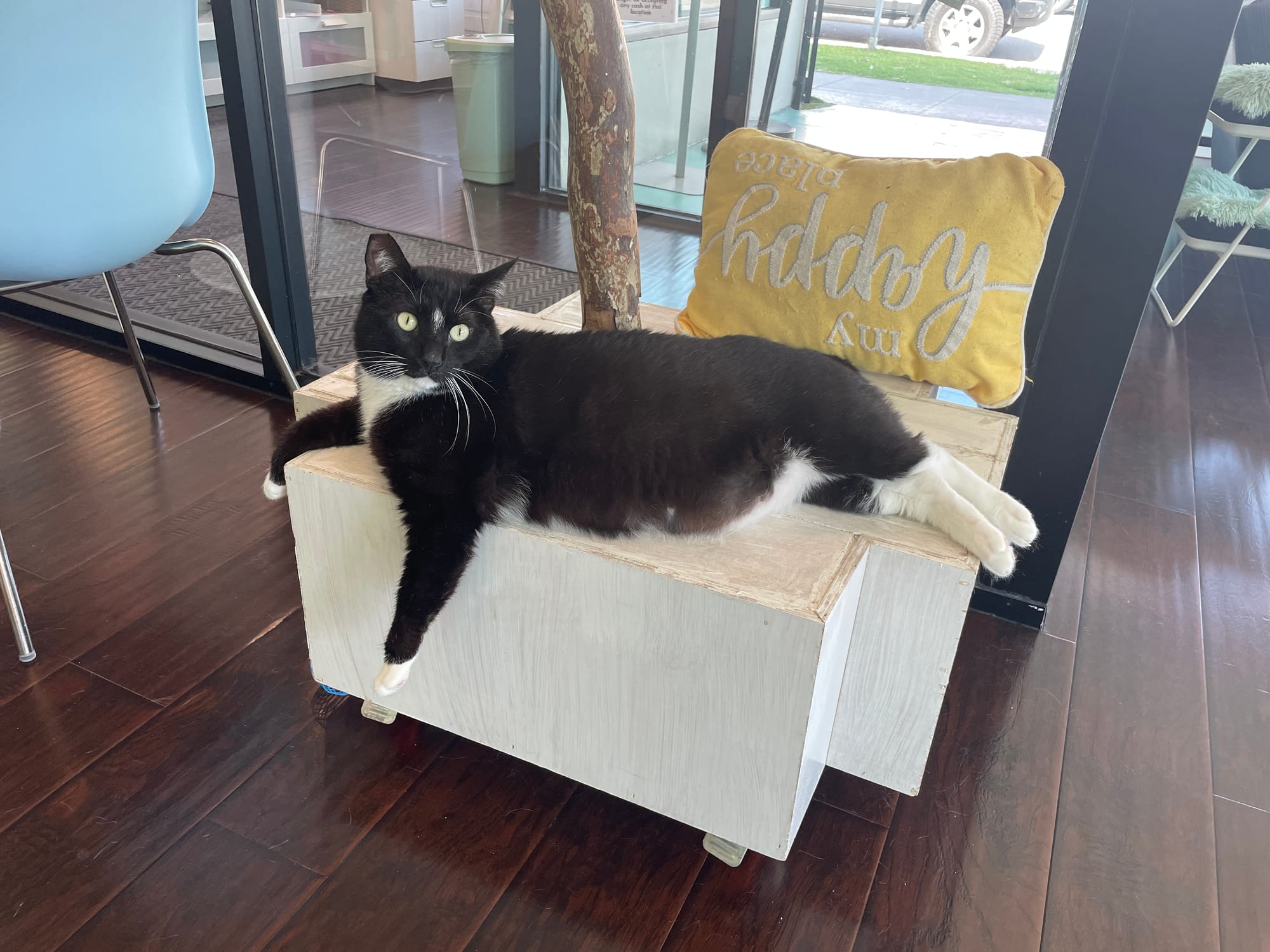 Book a session at Feline Good Social Club, and you’ll be surrounded by cats climbing over you during yoga and batting at your crochet needles or paintbrushes. Oh, you’ll think as you cuddle your favorite, if only I could take this one home.
