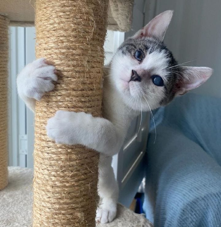This basking ball of cat is Zane! He takes some time to feel comfortable and safe, but when he does, he’s a snuggler who likes to hang out on the couch and watch movies. He would love a quiet household where he can be the only animal buddy or maybe with another non-aggressive cat. Zane was given away when his person moved, and the new owner abused and then abandoned him. He wound up in a public shelter, sick and sad and about to be euthanized. Is his new person out there? Could you be that person?