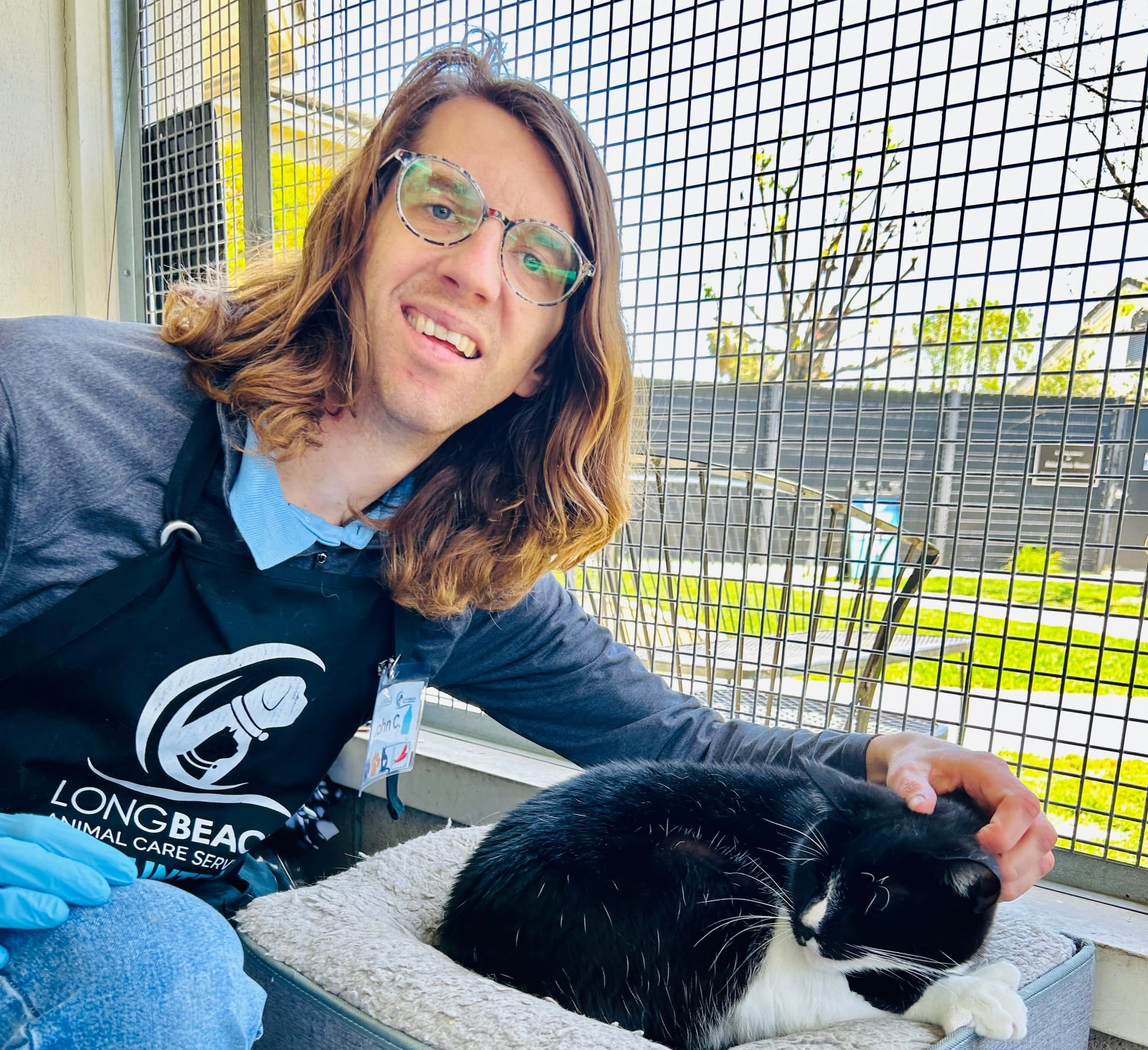 You met sweet Panda Bear (#A706078) in the video, showing off his proprietary status in the Catio. Not long ago, Panda Bear didn’t even have ownership in his own dwelling, and that isn’t life for a cat. His owner was evicted and left Panda Bear and his brother behind. His brother was adopted, and Panda Bear was left without his best friend, too. He was shy and reticent at first, but that never stops an LBACS volunteer. With their help, Panda Bear is now playful and affectionate but not clingy. He loves gentle chin and head scritches and relaxing in the sunlight. He likes people and gets along with other cats. He’s just 3 years old and is ready to share his long life with someone special.