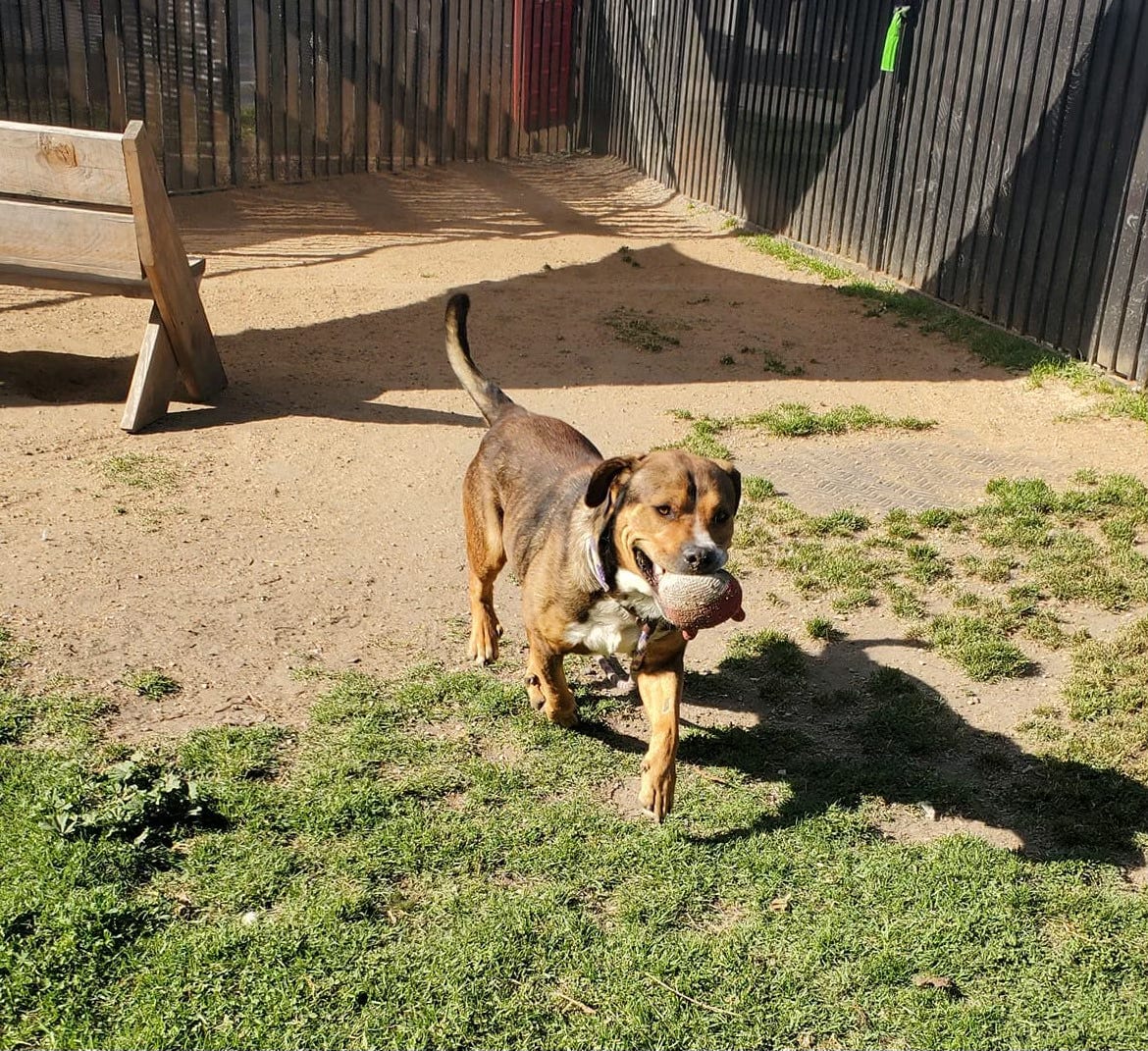 Chevy (ID#A717826) is a lovely two-year-old basset mix who enjoys his playgroups, especially if people join in. Here he is retrieving a toy! Chevy isn’t doing well being garaged in a kennel — he’d love a road trip to a fun home!