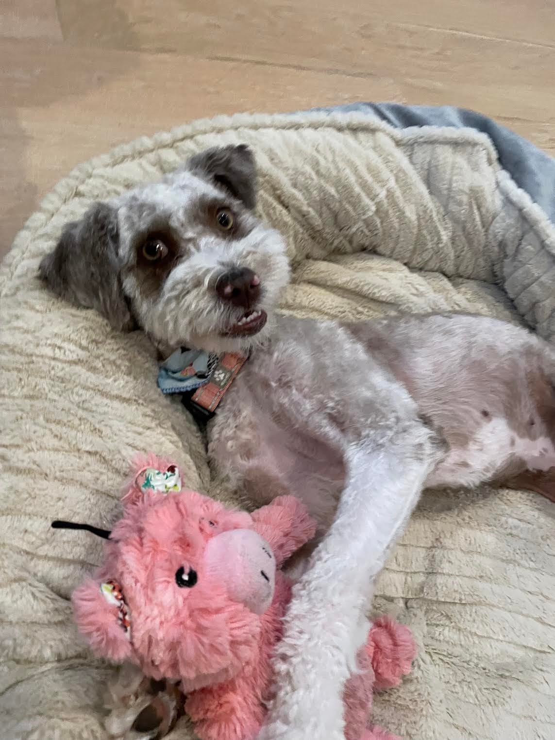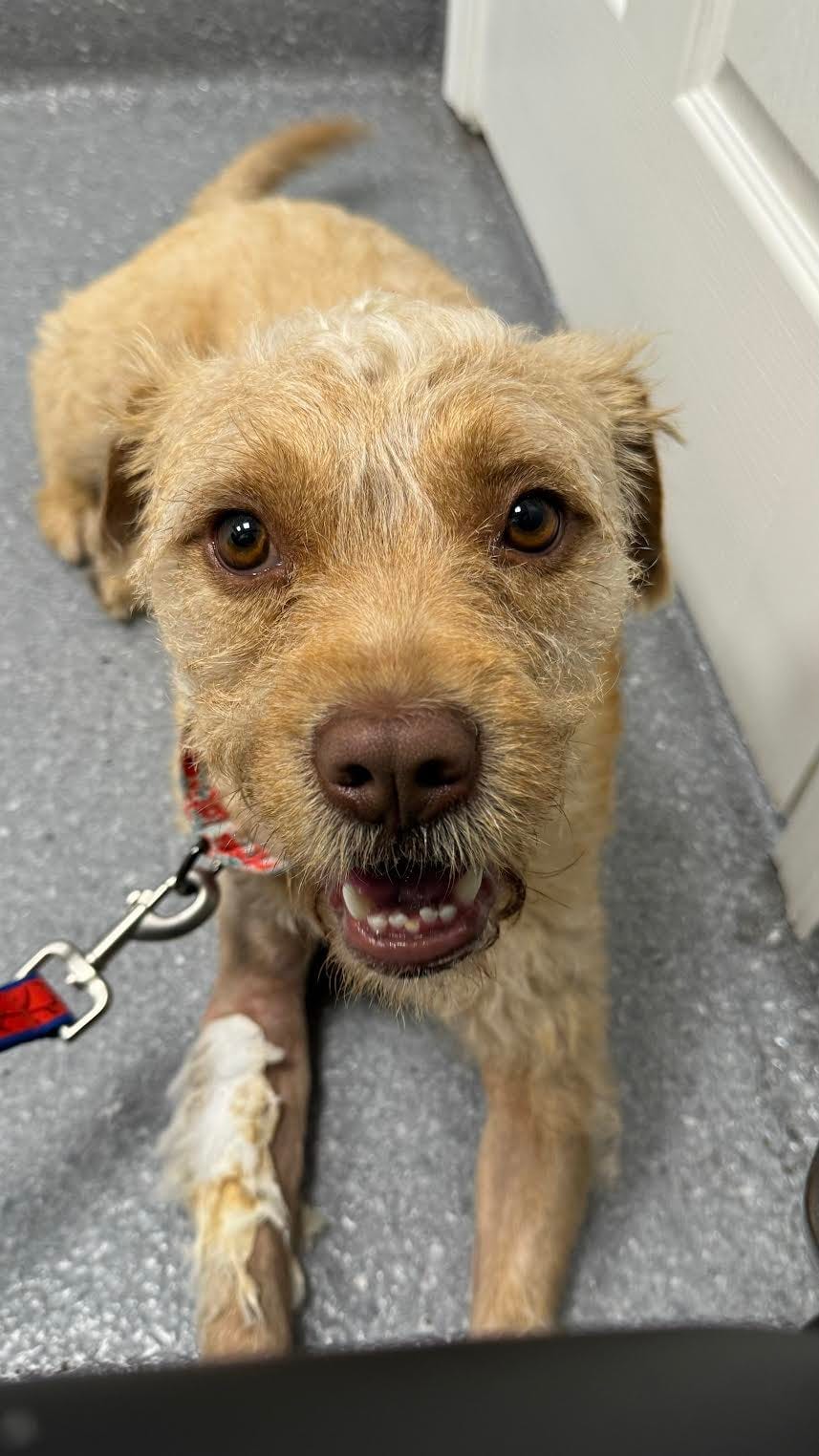 This sweet boy is handsome Prince. He was hit by a car and surrendered to the shelter with a broken leg. Safe Rescue Team sprung him, got his leg surgically corrected, and promised to find him the happily-ever-after that every real Prince deserves! Prince is about 2 years old, weighs 35 pounds, and is a fun, playful, loving fellow. He loves dogs, kids and cats. Best of all, he’s potty trained. He would do great in any environment. He is such a sweet and kind gentleman! Prince is not a huge fan of crates but he doesn’t need one — he doesn’t get up on furniture and he’s never And has the cutest mohawk ever!
