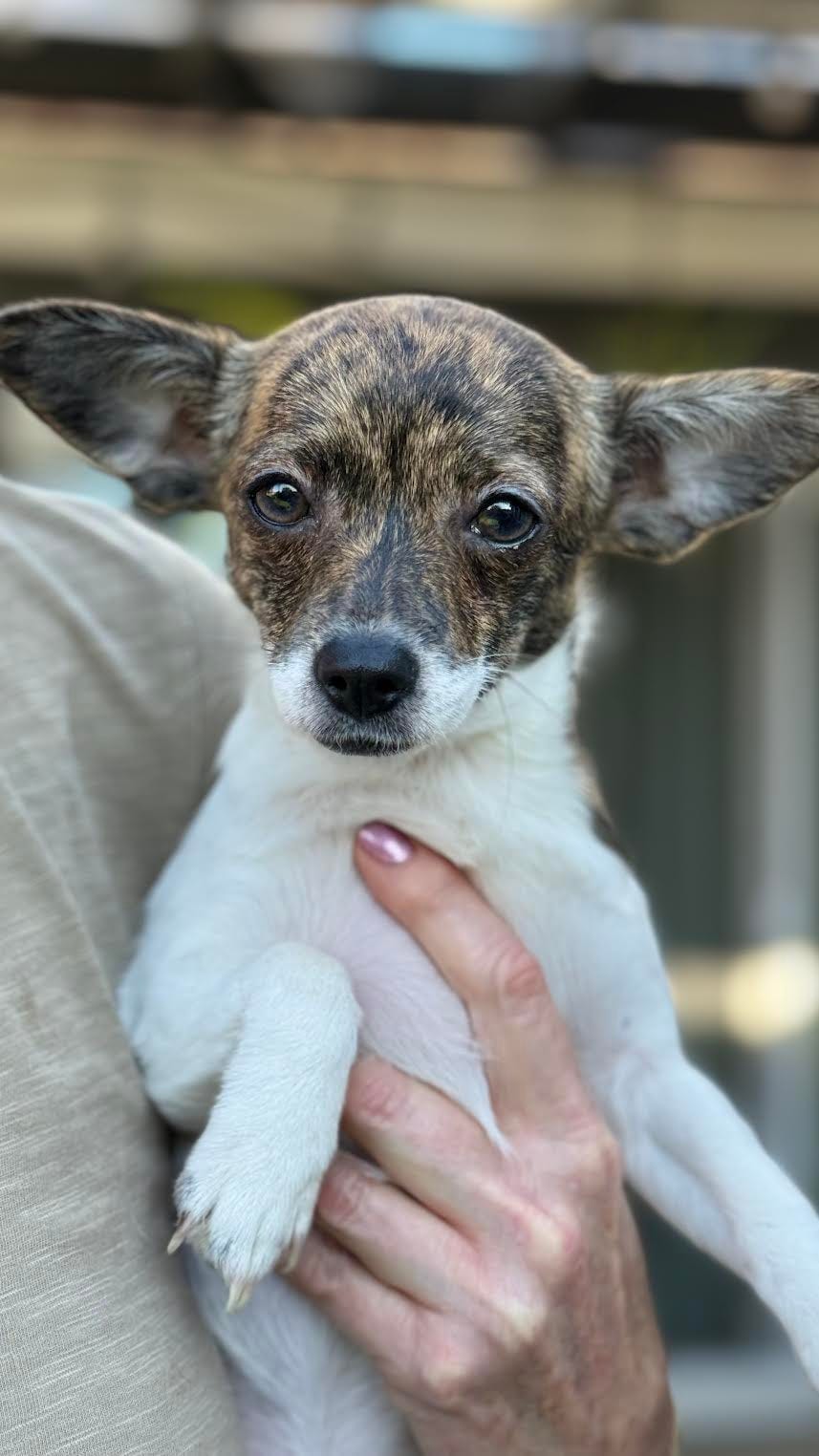 Scout and her sweet sister Izzy were victims of backyard breeding (grrrrr), and were the only two left of the litter when the landlord found out. Thankfully, Safe Rescue Team was there to catch them in their safety net. The two weren’t even vaccinated and were scared to death! Izzy’s gone home, but Scout’s still waiting. She’s a super-tiny Chiweenie — sweet, adorable, shy, dog-friendly, and potty trained. She’s still a scaredy-cat, but the team is working with her to show her that not everyone is mean and scary. She is doing amazing — love heals! Scout would do best in with another family dog, in an adult household. She is kid-friendly — she’ll just take time to warm up.