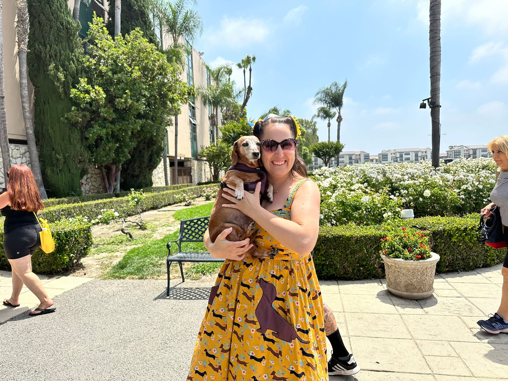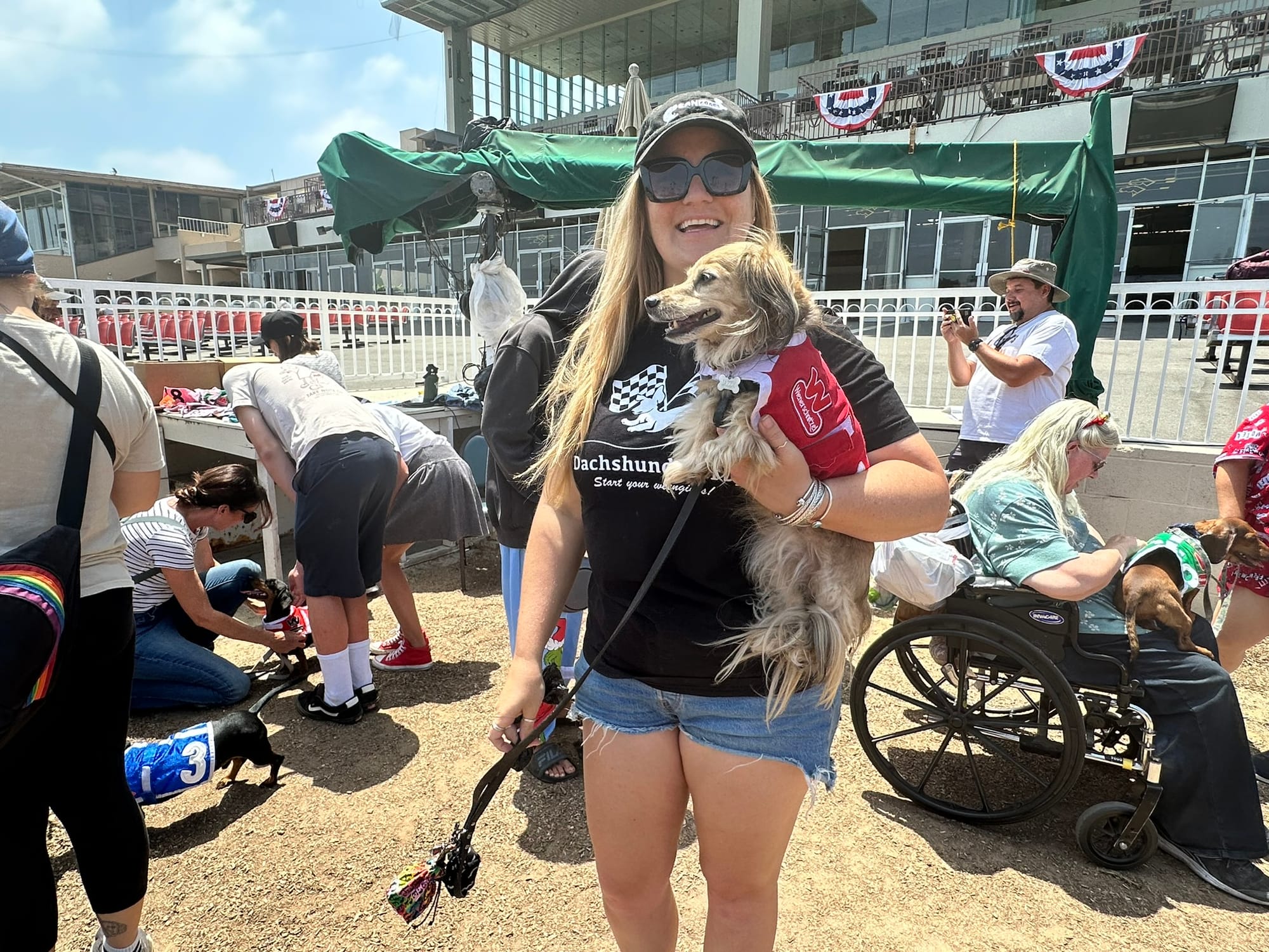Jazzy, a longhair miniature shaded cream, is enjoying her third time as a racer. Her human, Dani Moore of Long Beach, hopes that the third time is the charm. Jazzy’s a senior at 11, and she’s also a survivor of IVDD (intervertebral disc disease, a painful, sometimes paralyzing neurological spinal condition that affects certain dog breeds, dachshunds among them.). Jazzy had massive spinal surgery in 2021 and was up and trotting in almost no time. “You wouldn’t know she had it!”
