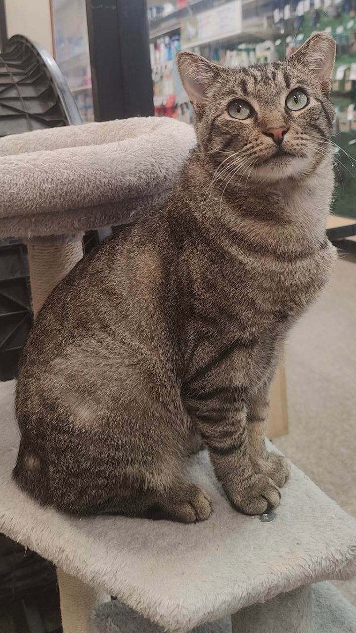 This is Minus–note the stubby tail—and Brandy and her cohorts are quite pleased with themselves about the name. Minus is a biscuit-making champ who loves attention, loves dogs, and loves—well, attention. Don't let this face fool you—he's not nearly as mournful as he looks. He’s just a happy dude with resting worry face. He can be picky about his kitty friends, so he would do well as an only kitty or as a foster-to-adopt with careful introductions to any resident kitties. He's about 2 years old and is neutered, microchipped, vaccinated, and ready to go home.