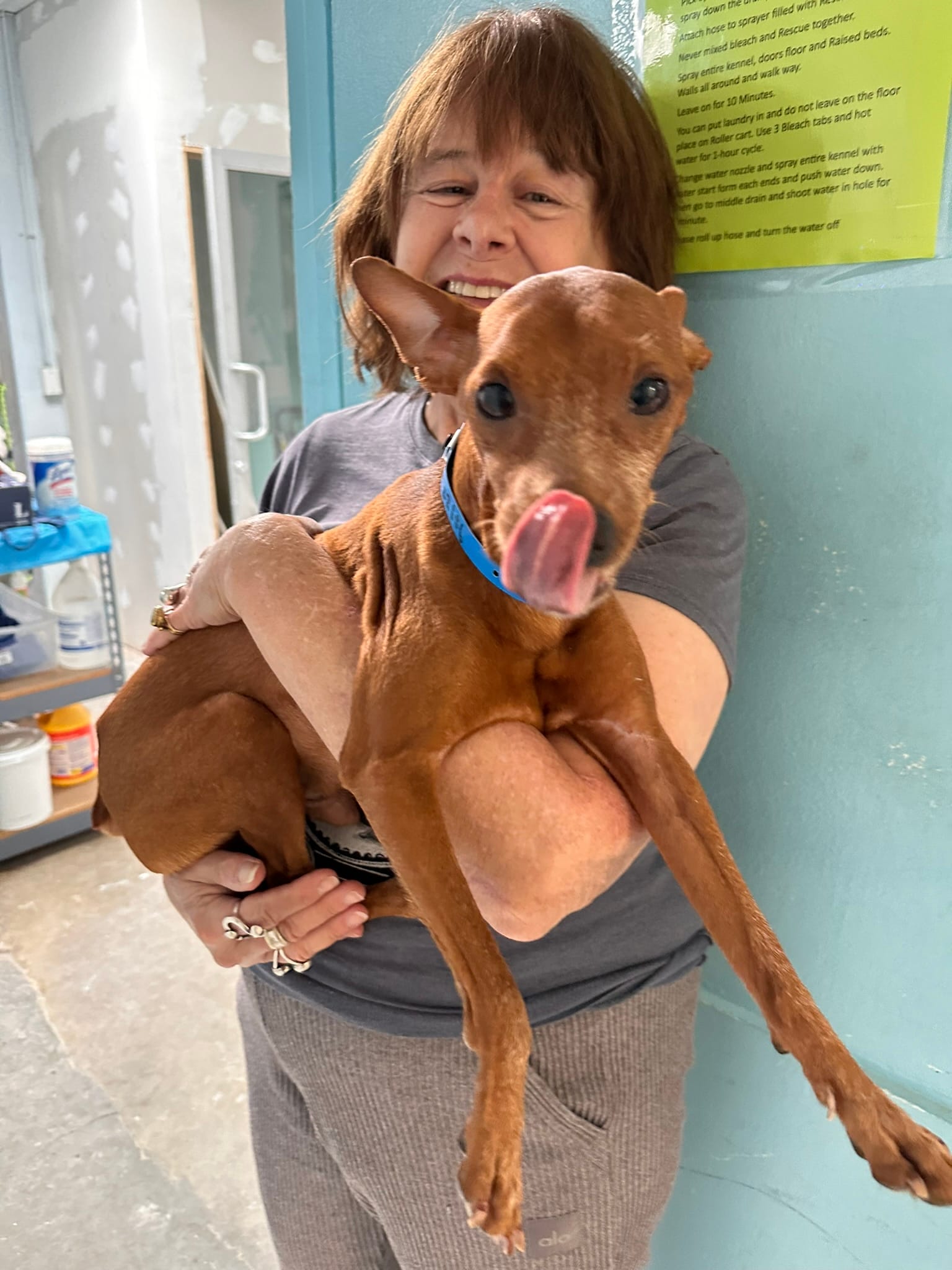 Juan (ID#722687), a 4-year-old min-pin mix, was also brought in after the eviction. He, too, is a sweetheart, and I was drawn to him because he seems to be a catlike creature. However, my own cats know better and wouldn’t welcome him, so how’s about you?