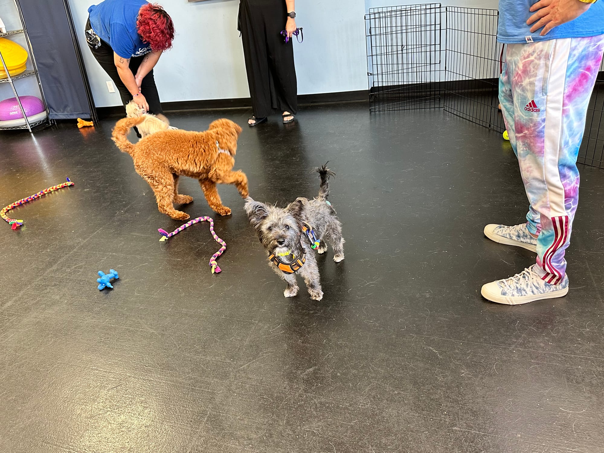 “We work on reactivity a lot,” Mike said. “A lot of people don’t realize that when they take a dog to a dog park all the time, they get really excited every time they see another dog. Say you’re on a walk, and your dog sees another dog, and he gets really excited, but he can’t go over to it because he’s on a leash. He gets frustrated and will start barking at the other dog. We identify what the reactivity is and work towards that. The goal is always to get the dog from the least reactive situation into a group setting so the person can start working on socialization around other dogs on leashes.”