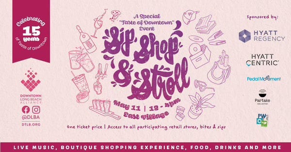 The Downtown Long Beach Alliance is hosting a Sip, Shop & Stroll event this Saturday in the East Village from noon to 4 p.m. Retailers in the East Village will be paired with food and beverage businesses so you can eat and drink while shopping. One ticket will get you an all-access wristband and souvenir cup to taste all the offerings. Tickets are $50 for those over 21 and $30 for people ages 11 to 20 (or those not drinking alcohol). The event is free for kids 10 and under. Tickets and more information can be found here.